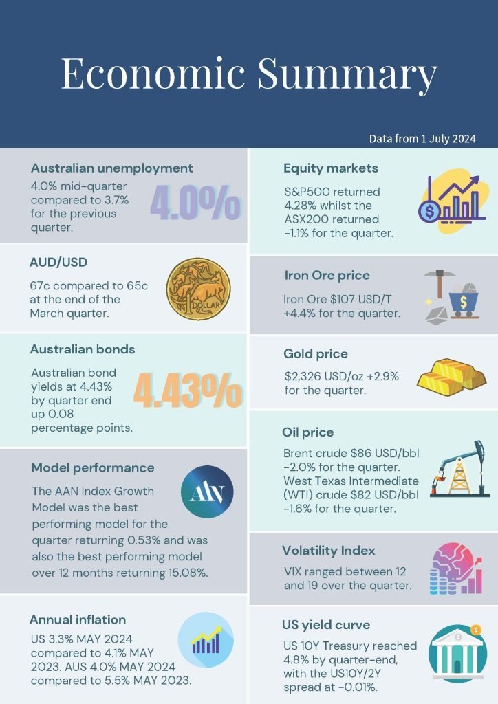 The AAN Models have had a mixed quarter, with models dominated by active fund managers slightly underperforming, while the index-based models had small outperformance over the June quarter. Details for each mode are available below. The figures for the active and index models are all before fees.